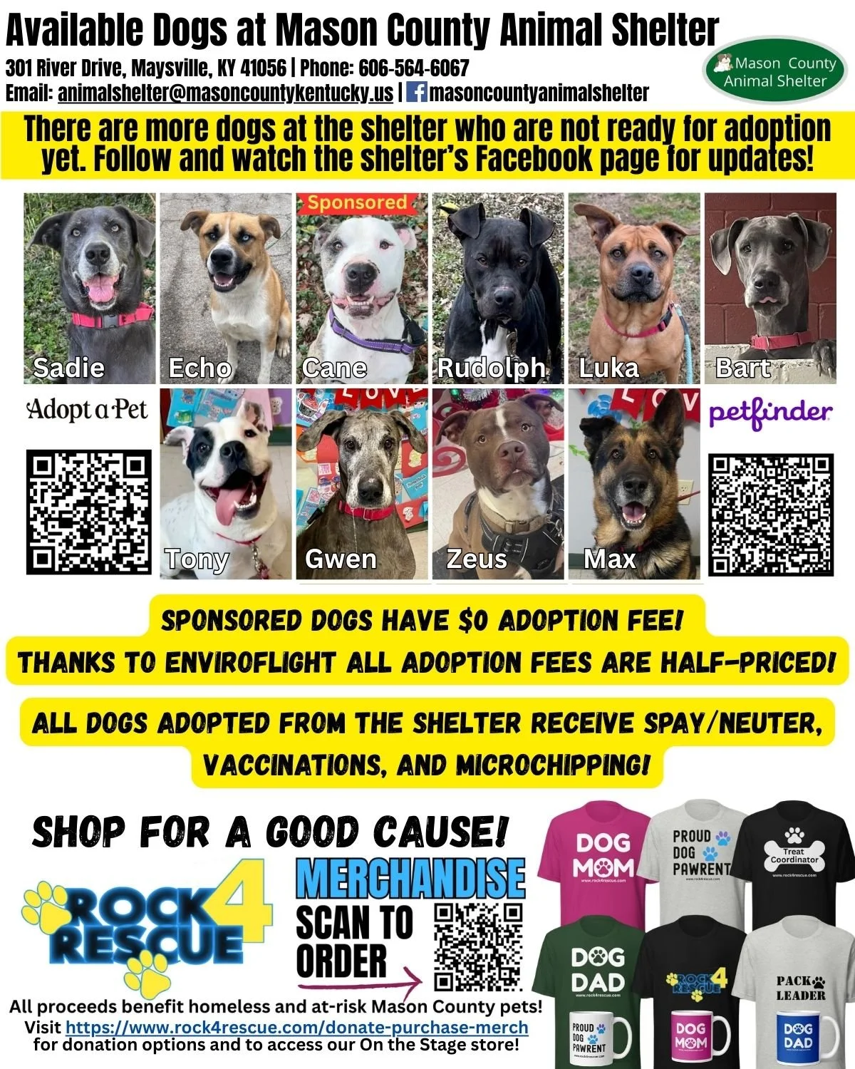 We are an all-volunteer organization with 501c3 non-profit status. We are dedicated to improving the lives of shelter animals, as well as other at-risk pets in the community through music events and other fundraising activities. Our goal is to increase pet adoptions, raise animal welfare awareness in the community, fund spay and neuter surgeries to reduce the number of unwanted pets in the area, and provide financial support for the dogs at Mason County Animal Shelter in Maysville, Kentucky.